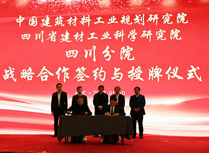 2019年1月10日,在北京召開的“建材產(chǎn)業(yè)高質(zhì)量發(fā)展前瞻研討會暨中國建材規(guī)劃院建院40周年大會”上,在中國建材聯(lián)合會喬龍德會長和工信部原材料司呂桂新副巡視員等領(lǐng)導(dǎo)的見證下,我院與中國建材工業(yè)規(guī)劃研究院簽定戰(zhàn)略合作協(xié)議,簽約成立中國建材規(guī)劃院四川分院并授牌。