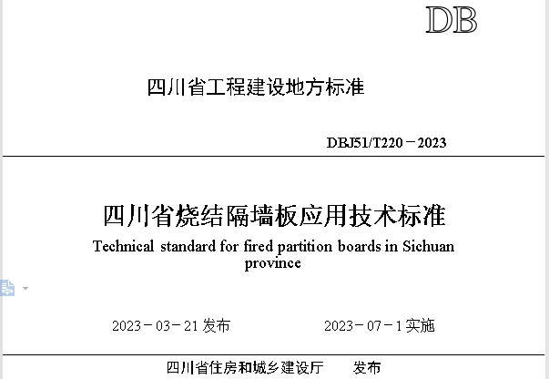 標(biāo)準(zhǔn)助推綠色新材料——《四川省燒結(jié)隔墻板應(yīng)用技術(shù)標(biāo)準(zhǔn)》于近日批準(zhǔn)發(fā)布