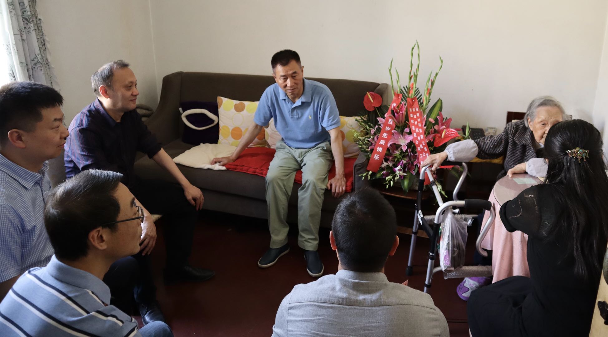 4月30日,公司黨委書(shū)記、董事長(zhǎng)、總經(jīng)理王強(qiáng),黨委副書(shū)記、紀(jì)委書(shū)記、監(jiān)事會(huì)主席、工會(huì)主席趙狄,黨委委員、董事、副總經(jīng)理趙斌一行看望慰問(wèn)百歲退休老專家毛寶仙同志,送去了慰問(wèn)信、慰問(wèn)金和鮮花,表達(dá)了崇高敬意和送上了誠(chéng)摯祝福。